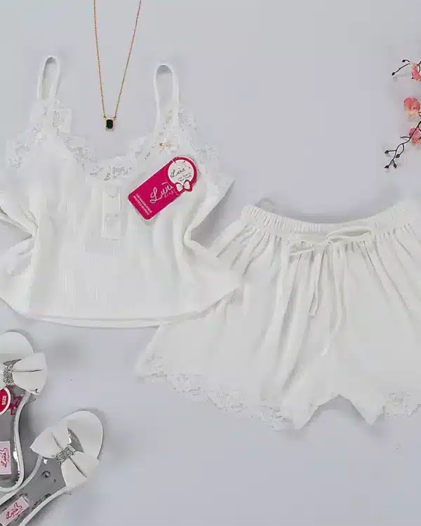 موديل بيجامه قطعتين شورت ستان كود 7004