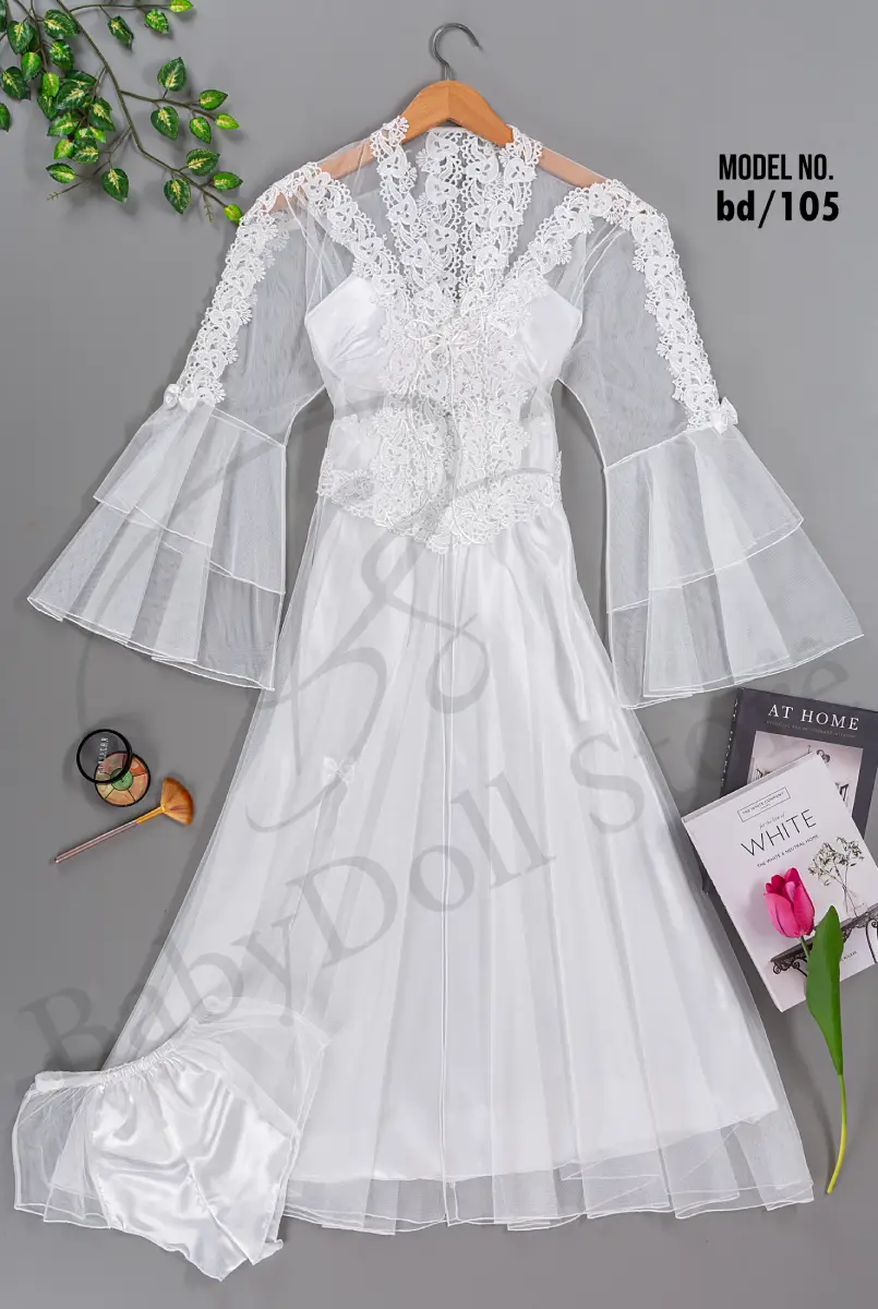 موديل صباحيه طويل ابيض كود 8066