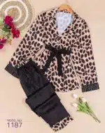 موديل بيجامة ستان بنطلون منقوش كود 7089