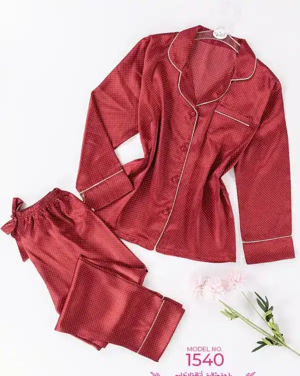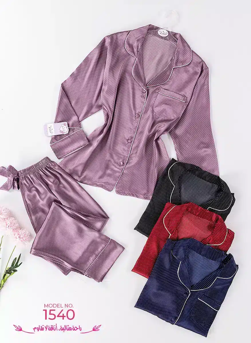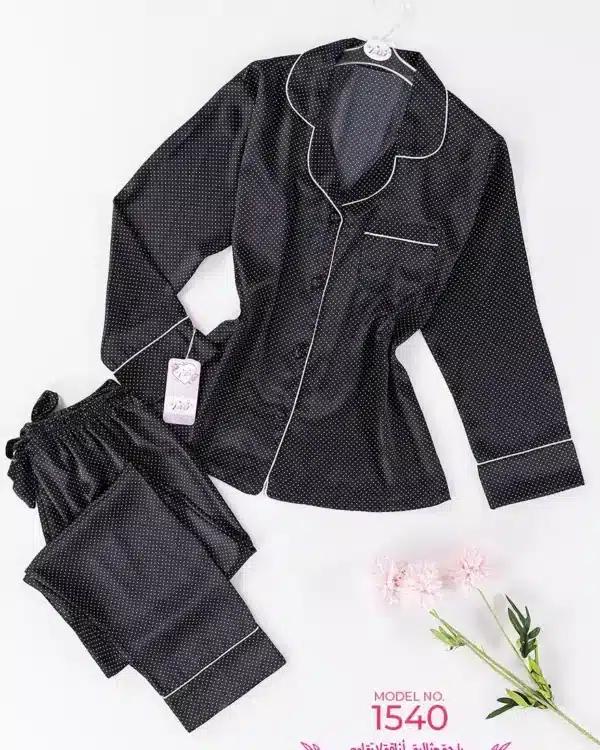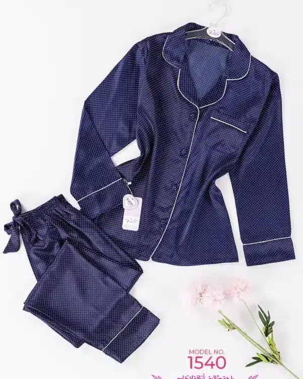 موديل بيجامة ستان منقطة قطعتين كود 6029