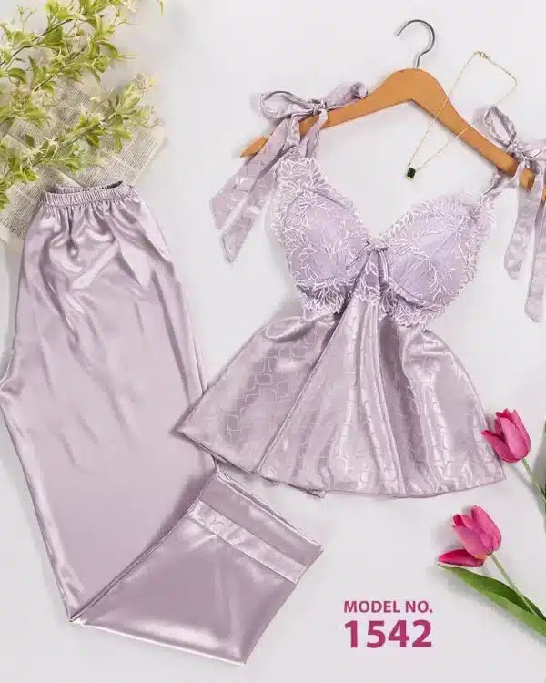 موديل بيجاما ساتان قطعتين كود 660