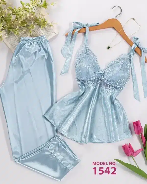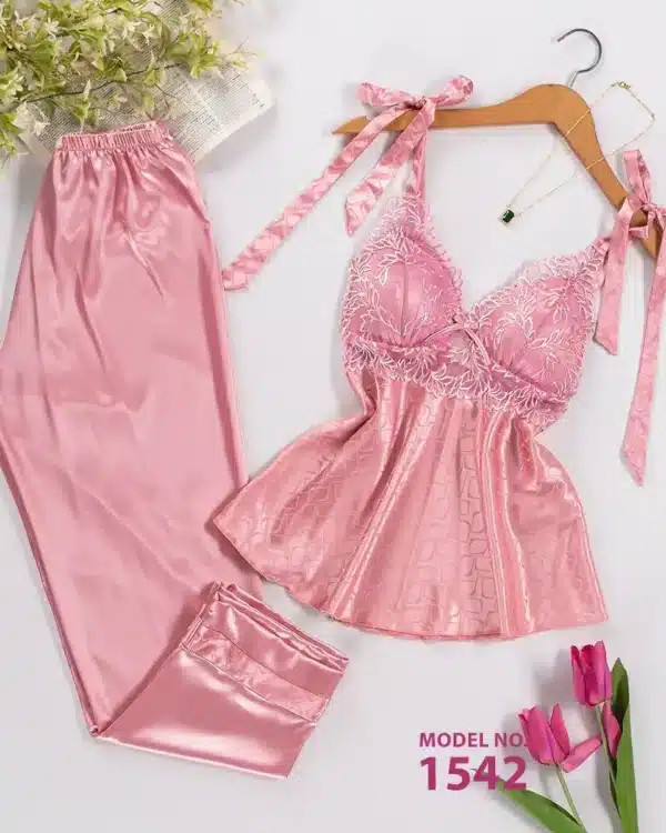 موديل بيجامه 3 قطع ستان كود 1377