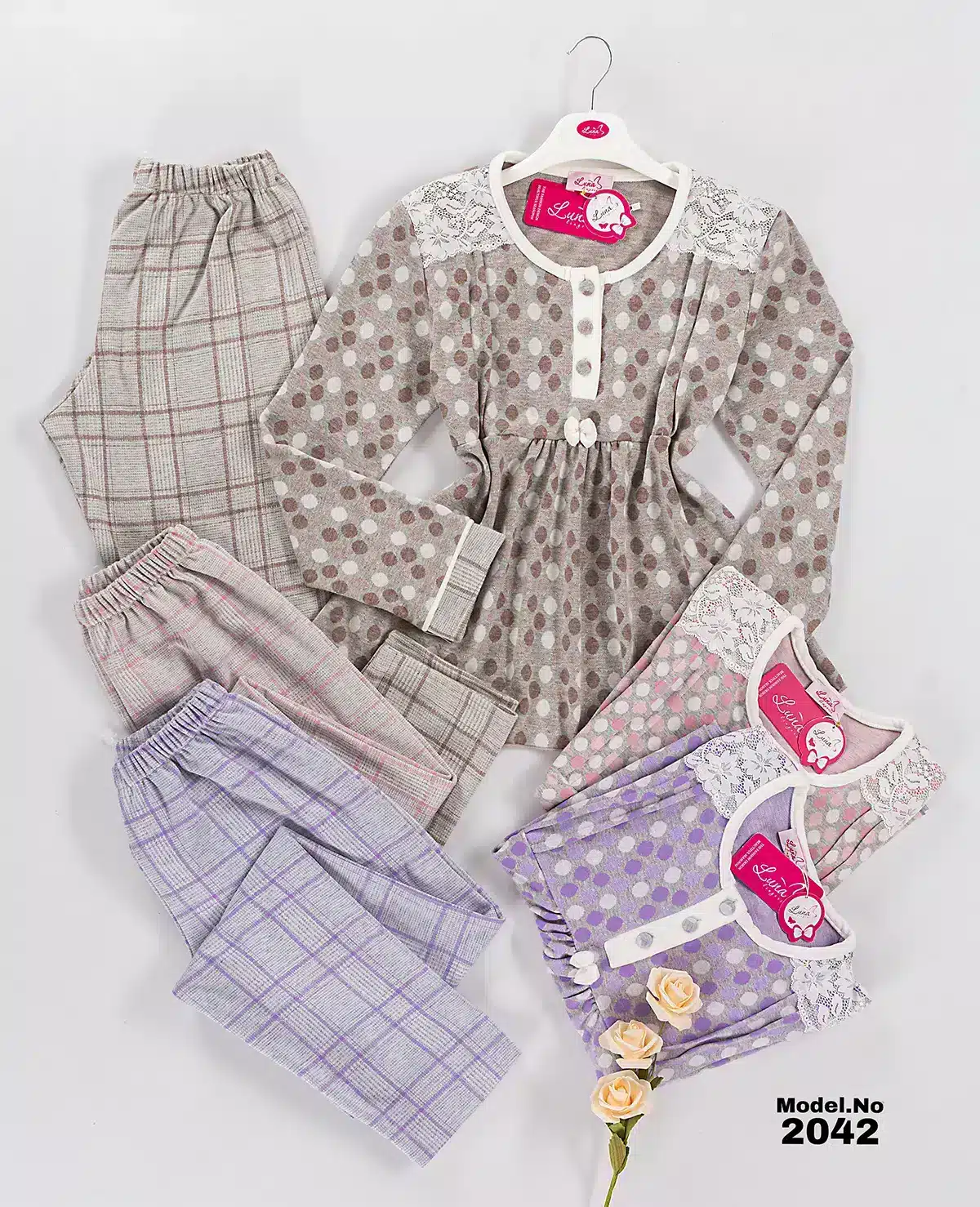 موديل بيجامه بنطلون قطعتين شتوي كود 2042