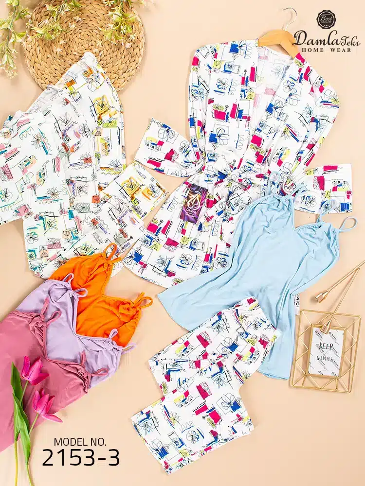 موديل بيجامه بنطلون ثلاث قطع كود 2153-3