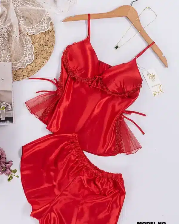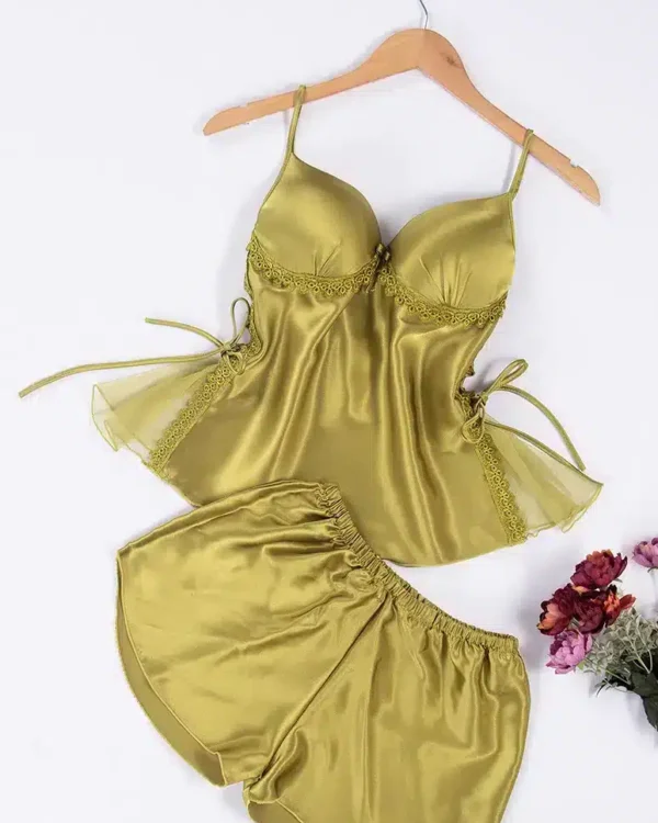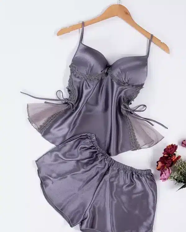 موديل بيجامه قطعتين شورت ستان كود 7004