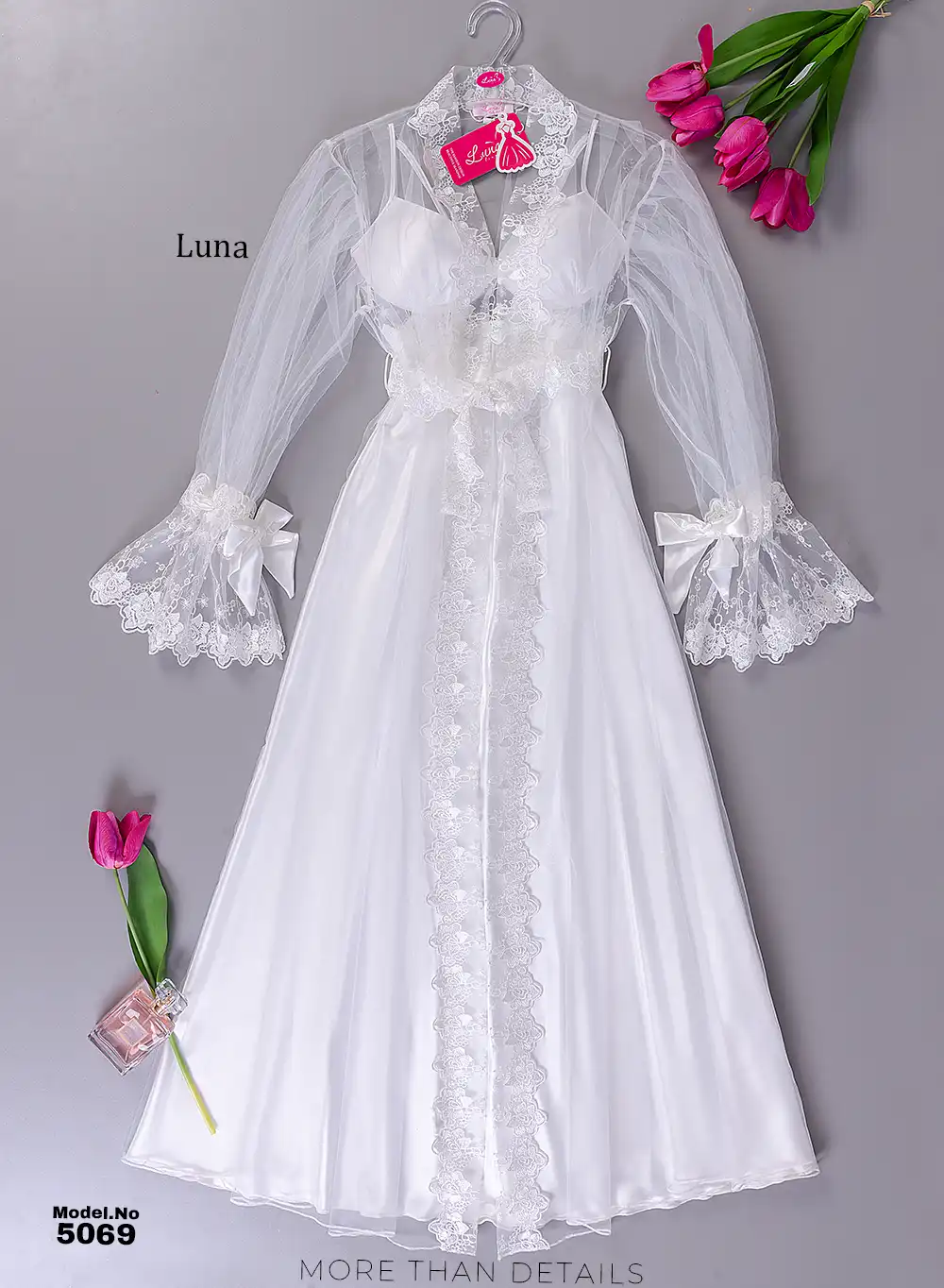موديل صباحيه طويل ابيض كود 8066