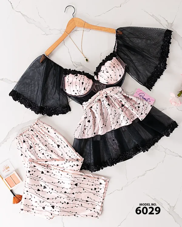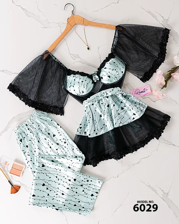 موديل بيجامه ثلاث قطع مشجر كود 942