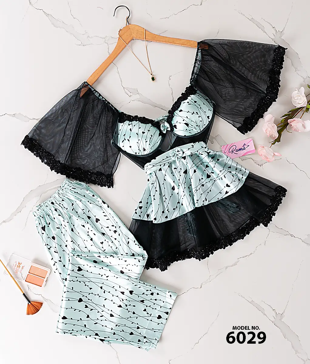 موديل بيجامة 3 قطع ستان كود 8048