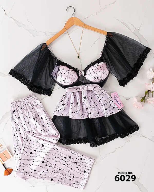 موديل بيجامة ستان بنطلون منقوش كود 7089