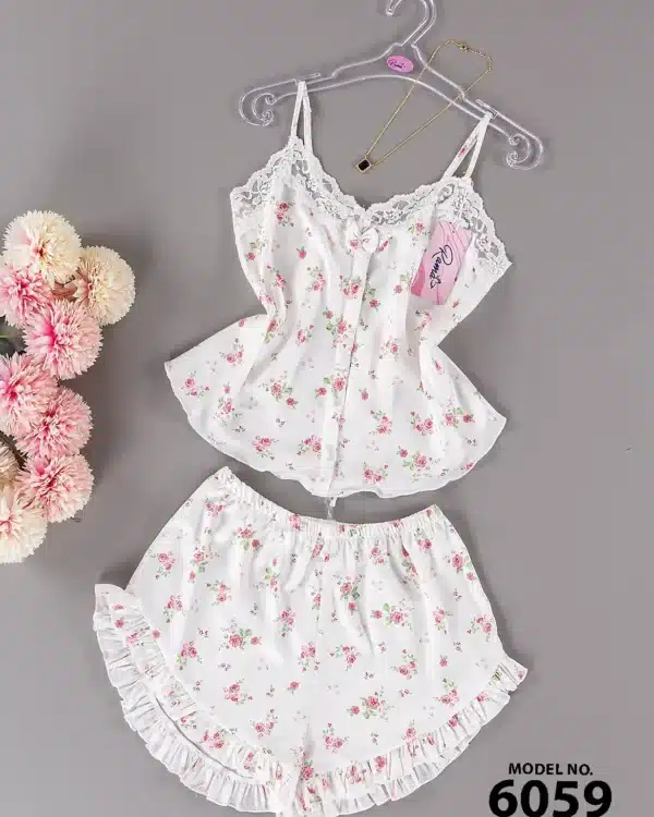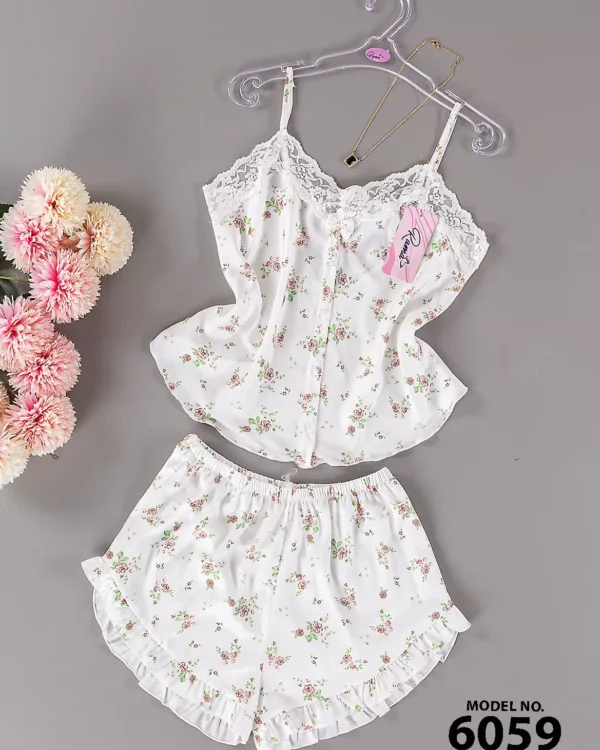 موديل بيجامه قطعتين شورت ستان كود 7004