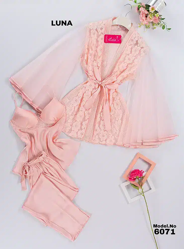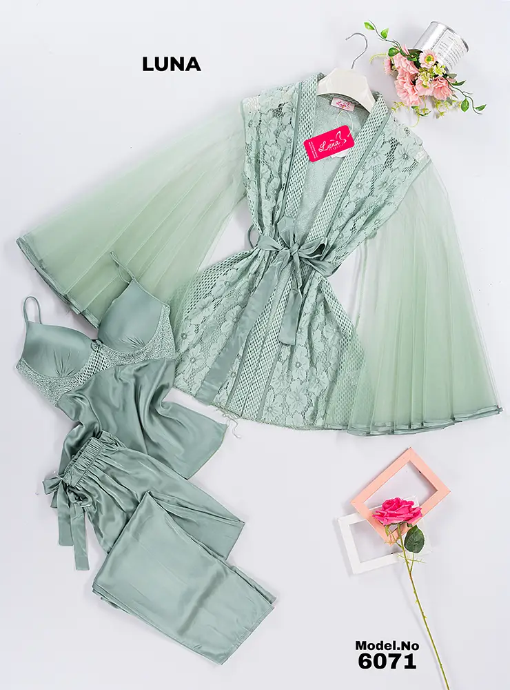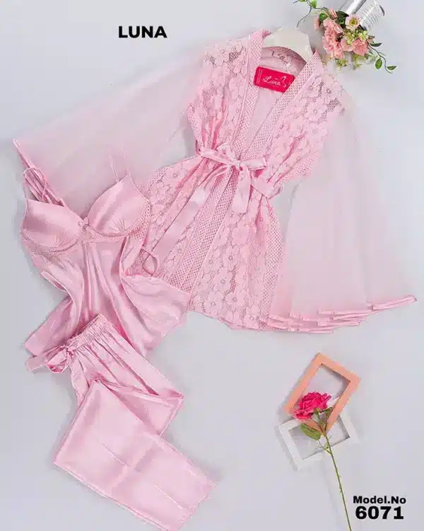 موديل بيجامه 3 قطع ستان كود 6071