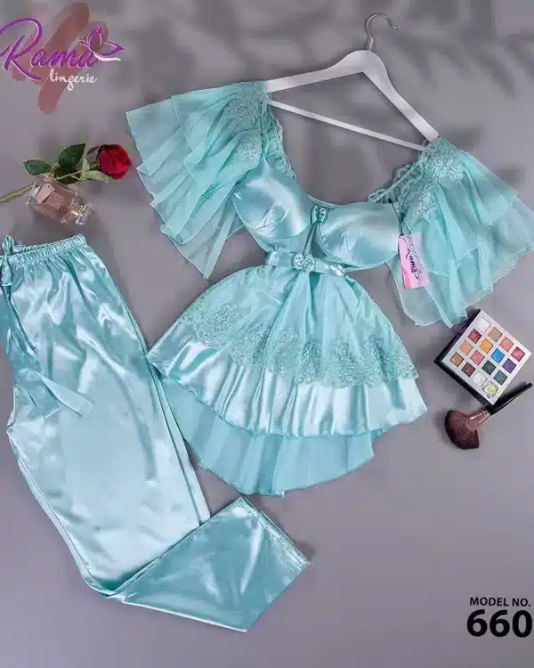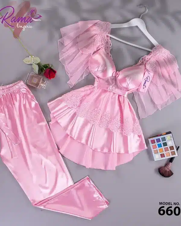 موديل بيجامة 3 قطع ستان كود 8048