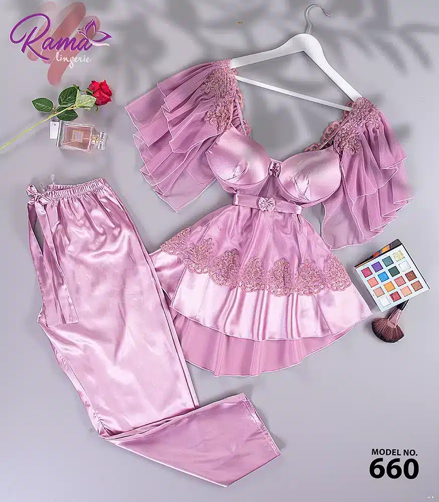 موديل بيجاما ساتان قطعتين كود 660
