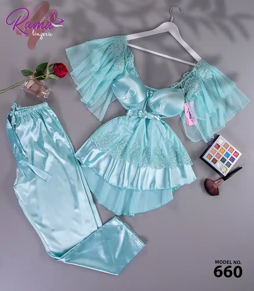 موديل بيجامة ستان 3 قطع كود 7062