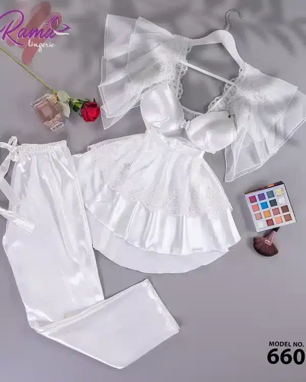 موديل بيجامة 4 قطع ستان كود 3024