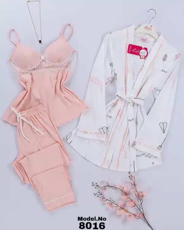 موديل بيجامة 3 قطع قطن كود 8016