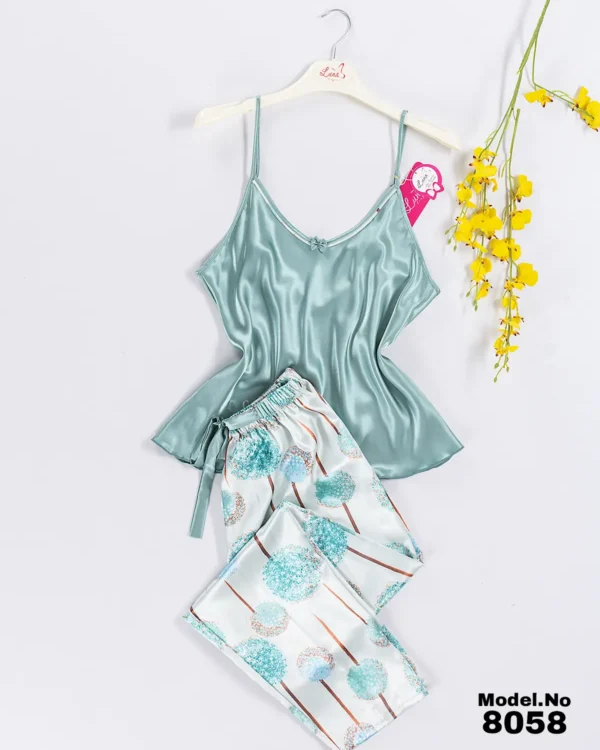 موديل بيجامة ستان بنطلون منقوش كود 7089