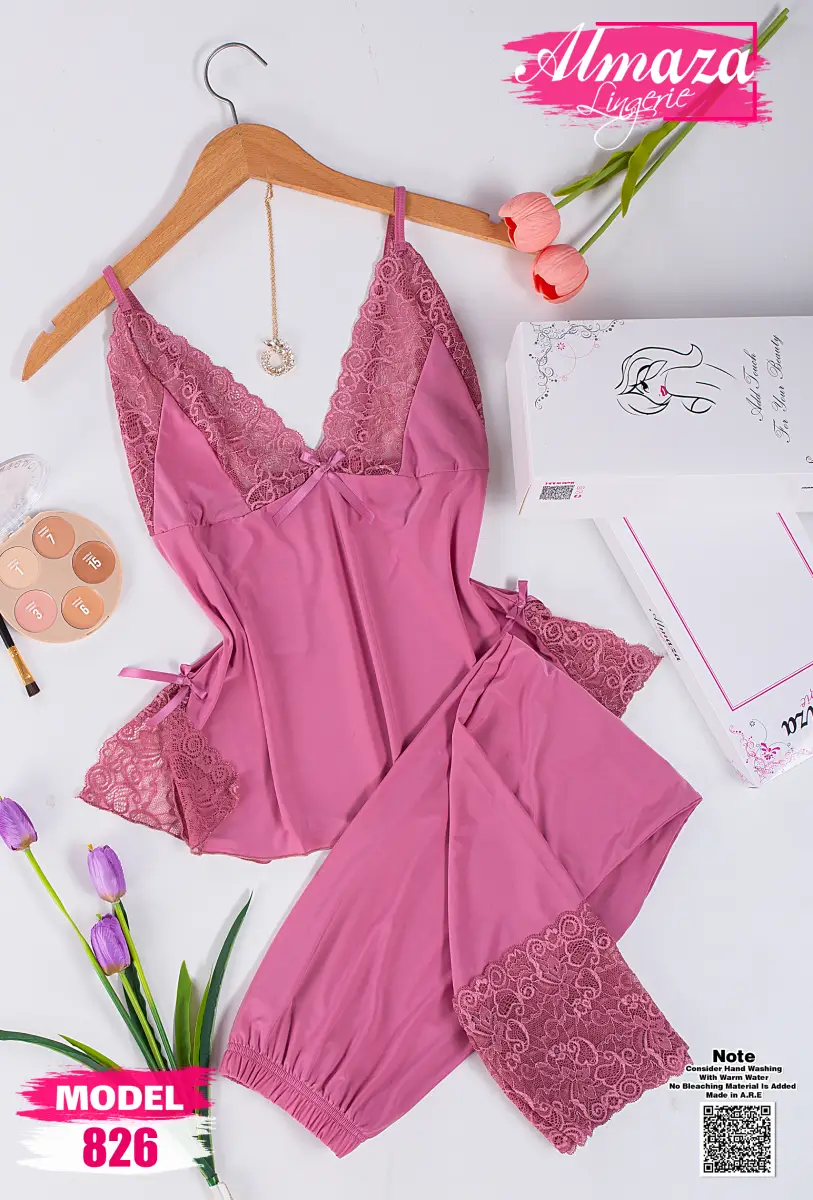 موديل بيجاما ساتان قطعتين كود 660