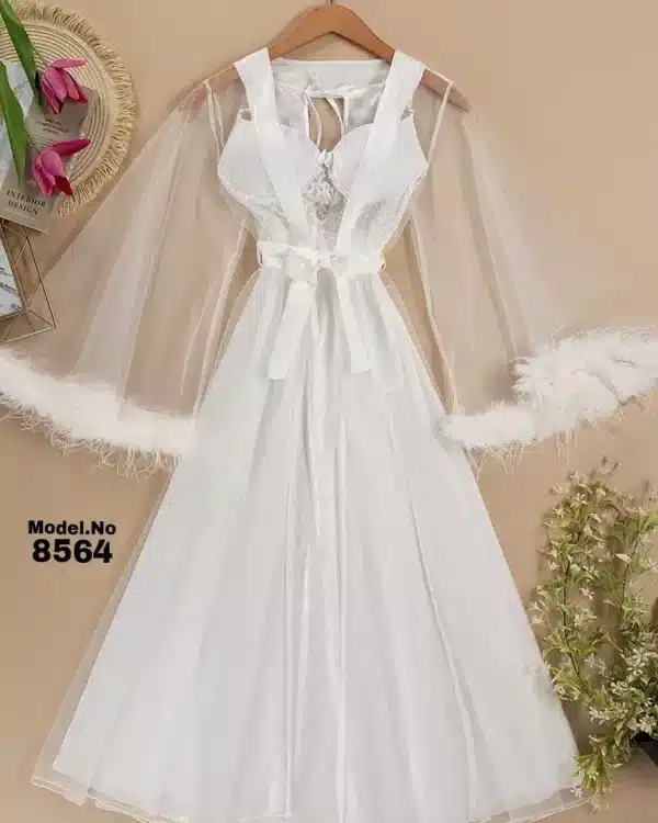 موديل صباحيه طويل ابيض كود 8066