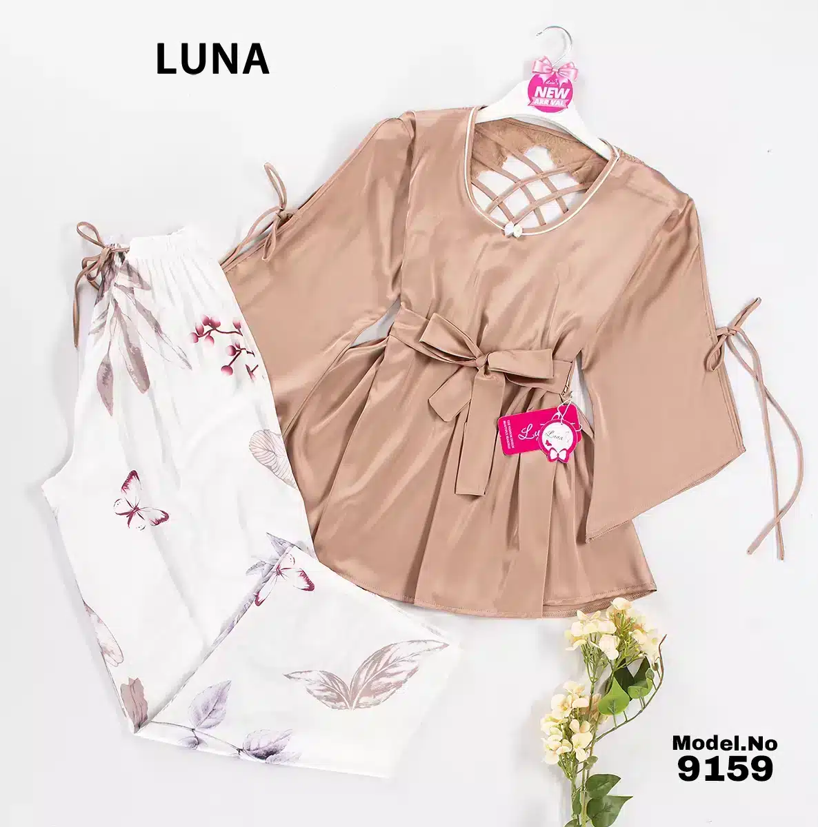 موديل بيجامة ستان قطعتين بكم كود 6050