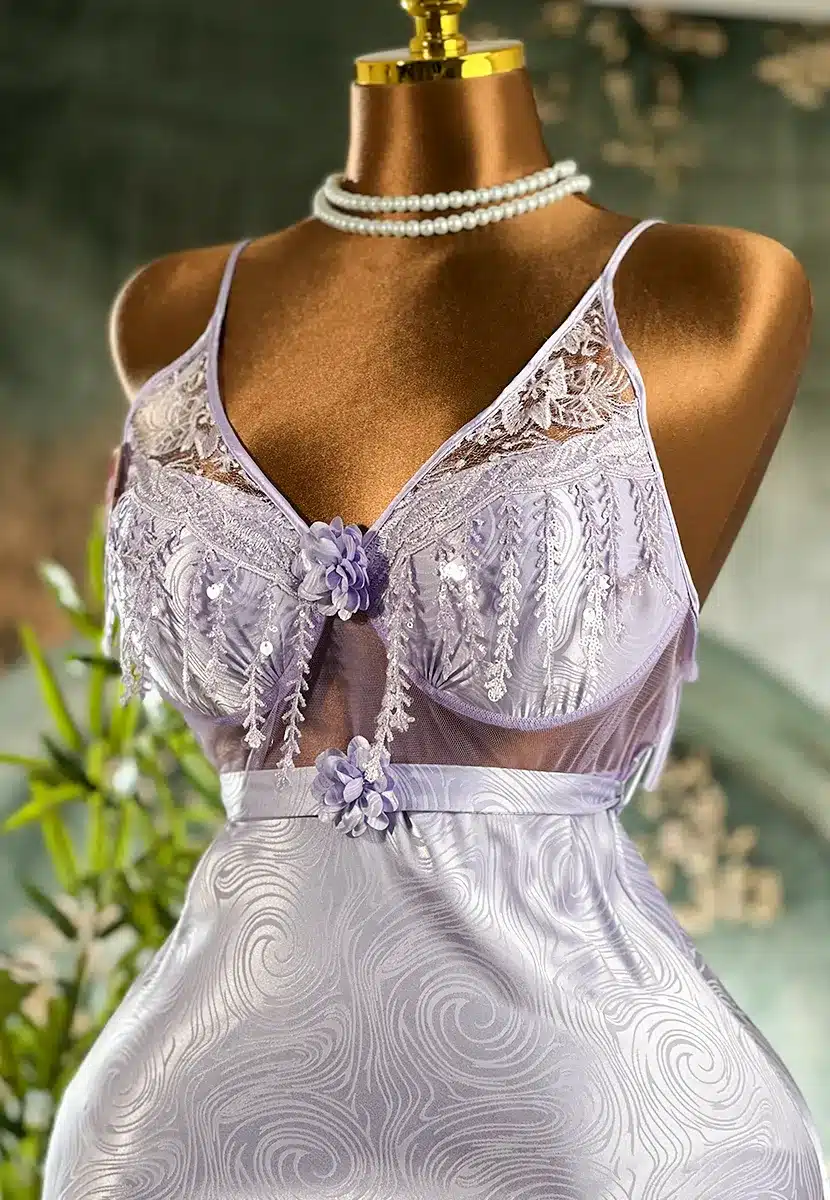 قميص ساتان جاكار مطرز قصير كود 1411