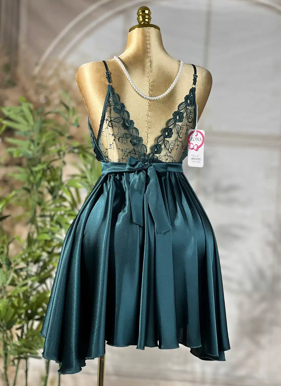قميص ساتان جاكار مطرز قصير كود 1411