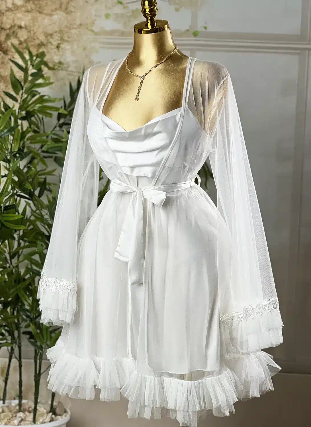 موديل صباحيه طويل ابيض كود 8066