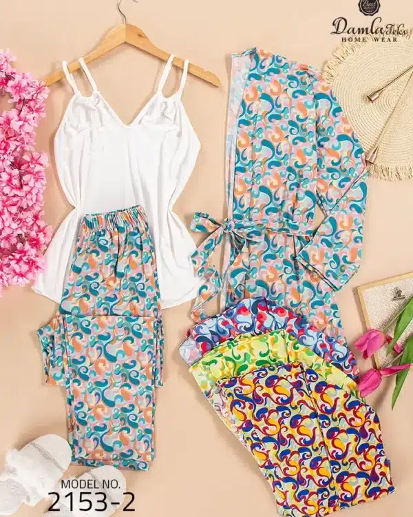 موديل بيجامه بنطلون ثلاث قطع كود 2153-1